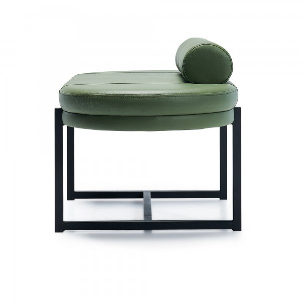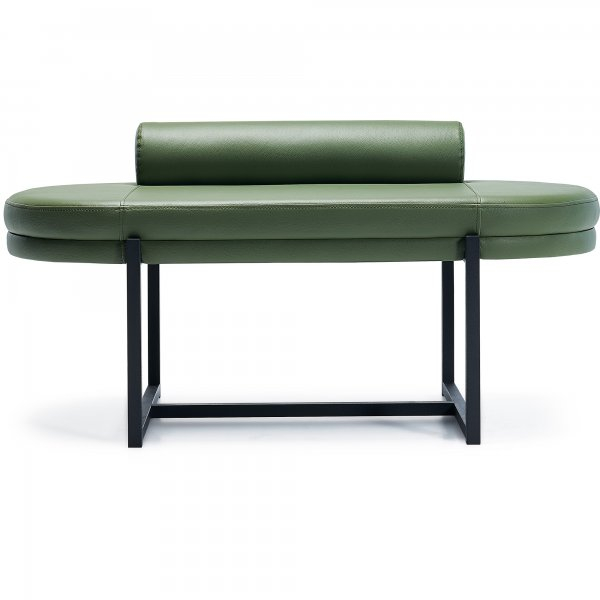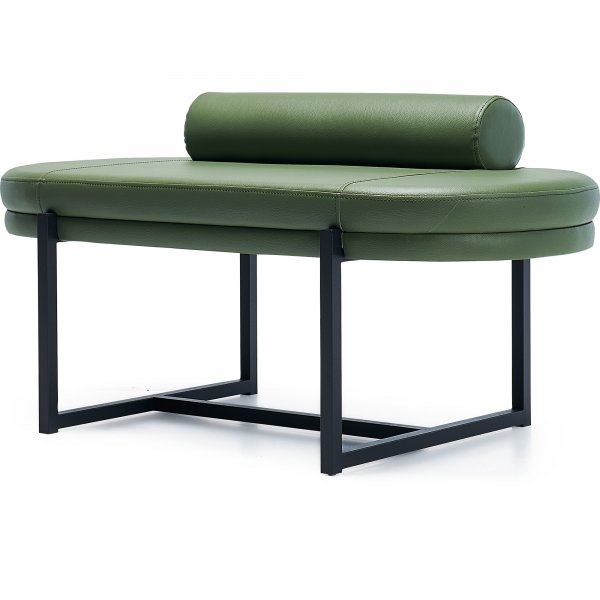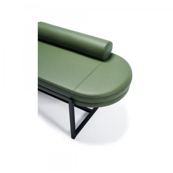 Bancheta OSLO reprezinta o piesa de mobilier statement, care imbina rafinamentul stilului Art Deco cu exigentele functionale ale spatiilor comerciale moderne. Constructia sa robusta, bazata pe un cadru metalic negru cu geometrie rectangulara, contrasteaza elegant cu formele rotunjite ale sezutului si spatarului. Spatarul de tip rulou (cilindric) nu este doar un element estetic distinctiv, ci ofera si un suport ergonomic versatil. Tapiteria de inalta calitate, intr-o nuanta sofisticata de verde, este usor de intretinut, facand aceasta bancheta ideala pentru cafenele, lobby-uri de hotel sau zone de receptie exclusive.