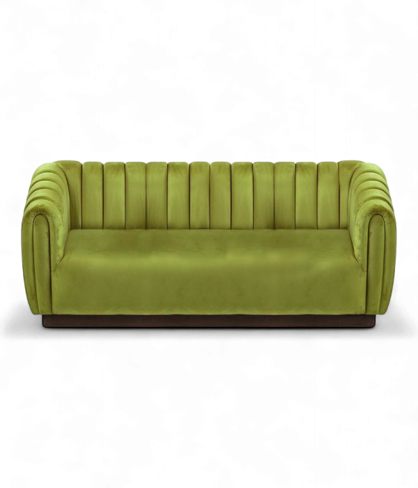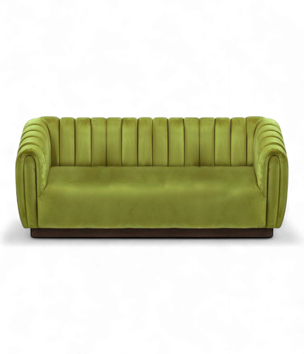 Canapeaua ATRA se remarca printr-un design elegant si sofisticat, inspirat din stilul Art Deco reinterpretat in cheie moderna. Formele sale rotunjite, bratele robuste si spatarul cu segmentare verticala creeaza un efect vizual distinct, ideal pentru spatii HoReCa care isi doresc o identitate puternica si memorabila.