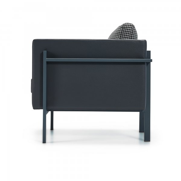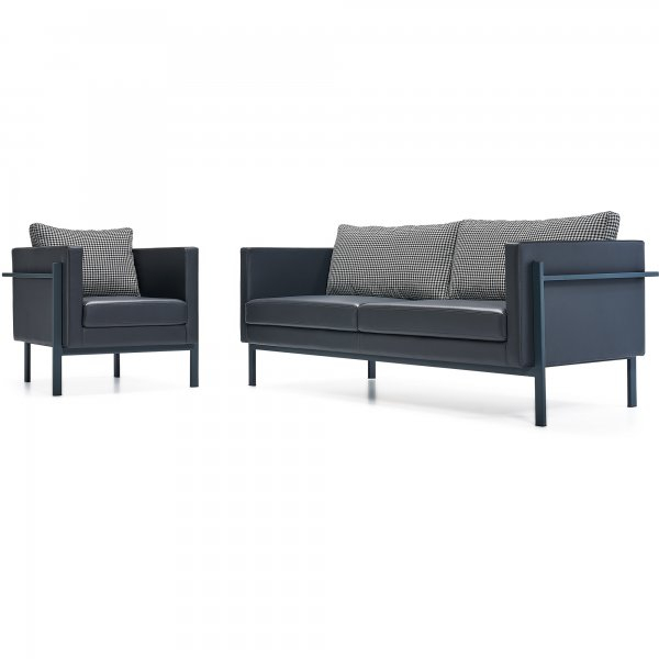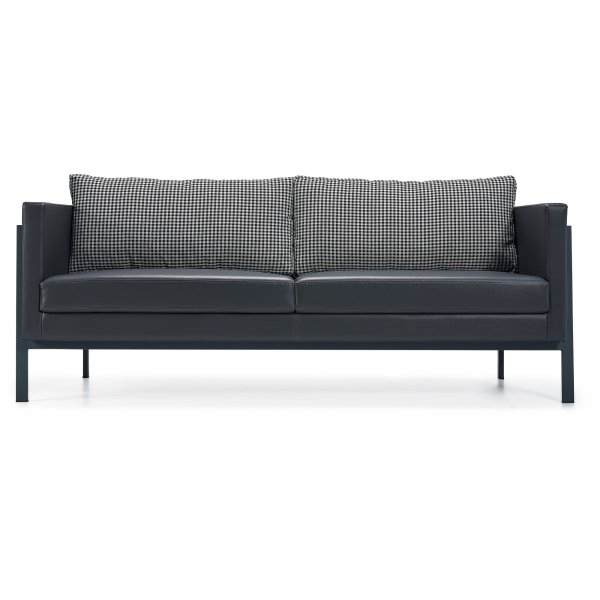 Canapea moderna cu design neo-industrial, realizata pe un cadru metalic robust, cu linii drepte si aspect minimalist. Spatarul este prevazut cu perne generoase din material textil, iar sezutul este realizat din perne tapitate, concepute pentru confort si rezistenta indelungata. Structura metalica vopsita asigura stabilitate si durabilitate, fiind potrivita pentru spatii HoReCa, lobby-uri sau zone lounge.