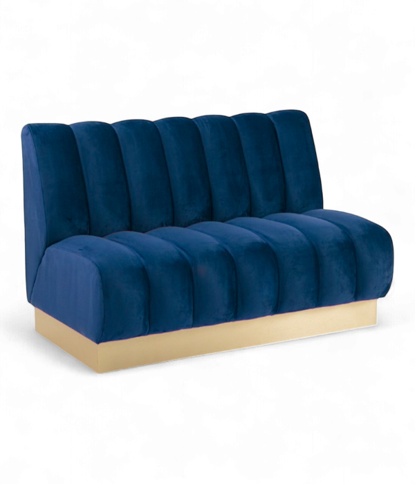 Canapeaua ELROND impresioneaza printr-un design modular elegant, inspirat din stilul Art Deco, reinterpretat pentru spatii HoReCa contemporane. Formele sale bine conturate, cu segmente verticale ample si sezut generos, creeaza un efect vizual sofisticat si echilibrat. Baza decorativa in finisaj metalic adauga un accent luxury distinct, punand in valoare tapiteria premium.