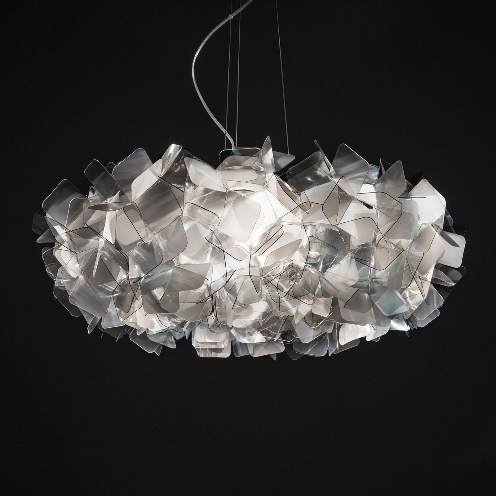 Clizia este o serie de forme ce se potrivesc împreună pentru a crea un echilibru perfect de reflexii și transparențe. Lampa a luat notă de formele naturale, asemănătoare cu un nor care captează primele raze schimbătoare ale soarelui dimineții sau cu un copac care filtrează un joc de lumini și umbre. Toate versiunile disponibile îmbină estetica cu funcționalitatea, având un sistem magnetic, care le conectează la tavan (pentru suspensii și aplicații) sau la baza metalică (pentru lămpi de masă și podea). Clizia transformă un spațiu într-un peisaj fără a-l copleși.