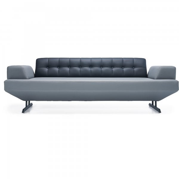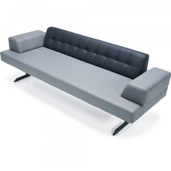 Canapea pentru birouri si spatii contractuale, proiectata in spiritul stilului streamline, cu linii curate si un spatar capitonat elegant, prevazut cu nasturi decorativi. Sezutul lat si bratele joase ofera o postura confortabila pentru zone de asteptare sau sali de reuniuni, in timp ce picioarele metalice ii confera stabilitate si o nota moderna. Tapiteria de calitate si finisajele atente fac produsul potrivit pentru medii profesionale.