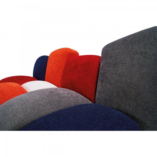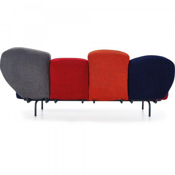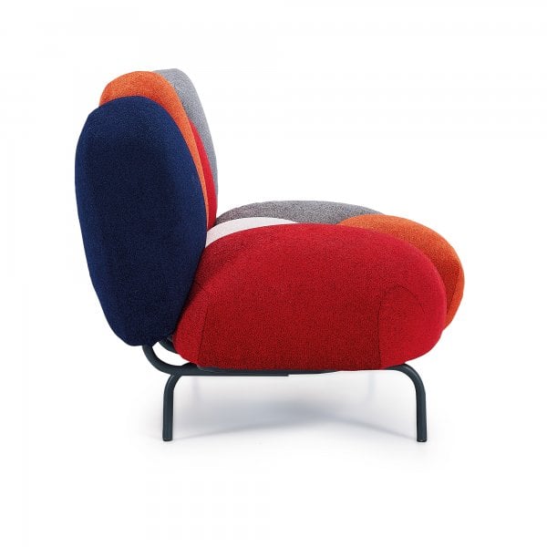 Canapea cu design neo-retro, caracterizata de spatar compus din panouri colorate si volumetrie organica, conceputa pentru a aduce accente vesele si confort in spatii office, sali de asteptare sau zone lounge. Structura eleganta pe picioare metalice subtiri contrasteaza cu formele moi si tapiteria textila, oferind o combinatie intre estetica indrazneata si functionalitate pentru trafic mediu spre intens.