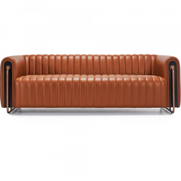 Picioarele metalice, cu un finisaj elegant de cupru, completează aspectul luxurious, oferind în același timp stabilitate și durabilitate. Ideală pentru birouri executive, zone de recepție de lux sau spații de lounge, canapeaua LONDRA transformă orice încăpere într-un loc primitor și plin de stil.