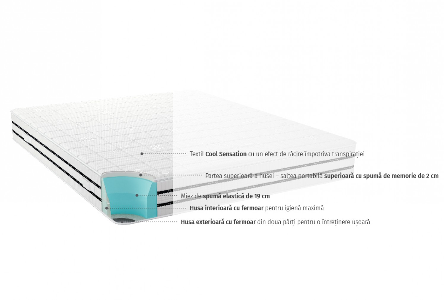 ● Strat de 2 cm de spumă cu memorie pentru un plus de confort