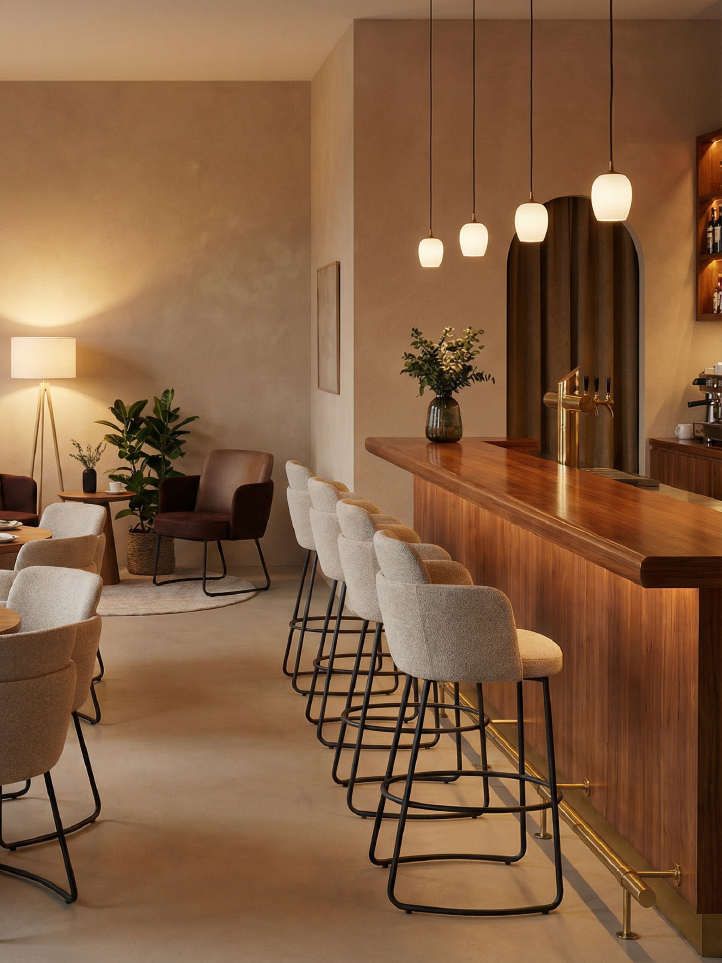 Scaunul de bar AZIS se remarca prin designul sau modern si confortabil, definit de scoica tapitata care ofera sustinere ergonomica si un aspect elegant. Cadrul metalic subtire asigura stabilitate si durabilitate, fiind conceput pentru utilizare intensiva in spatii HoReCa. Forma rotunjita a sezutului si bratele integrate creeaza o experienta placuta pentru utilizatori, in timp ce suportul circular pentru picioare completeaza functionalitatea. AZIS este ideal pentru baruri, restaurante si lounge-uri contemporane, aducand un plus de rafinament si confort.