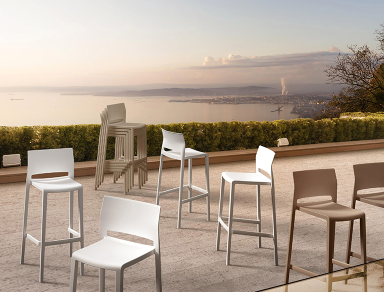 Scaunul Bakhita este versatil și se adaptează tuturor stilurilor, chiar și pentru utilizarea în exterior. Disponibil în două înălțimi, este ușor, stivuibil și multifuncțional. Fabricat din materiale robuste și inalterabile, este disponibil într-o gamă largă de culori și poate fi completat cu o pernă căptușită și tapițată.