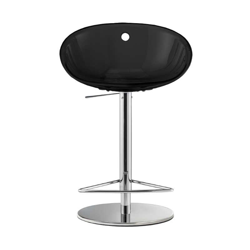 GLISS este un scaun inalt de bar alcatuit dintr-o scoica de policarbonat (plastic) si un picior central in forma de cilindru cu baza rotunda de 40 cm diametru.