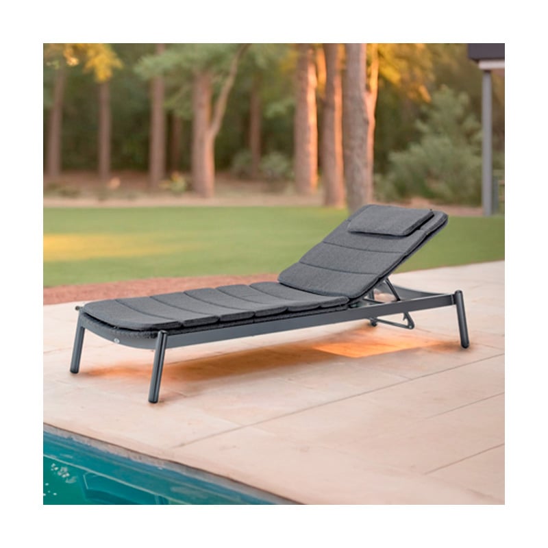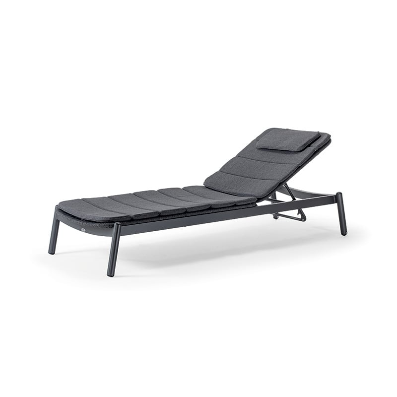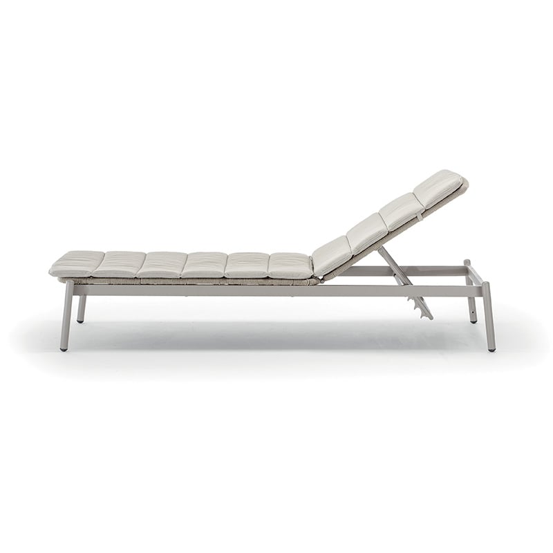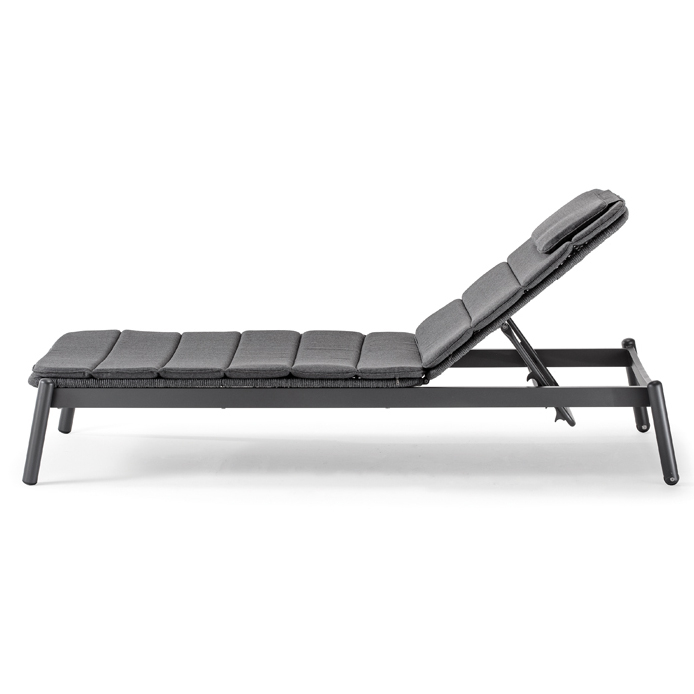 Este un sezlong din gama premium, ce se distinge prin cadrul robust din aluminiu acoperit decorativ cu corzi din poliester. Confortul superior este asigurat de pernele realizate din tesatura Olefin si umplutura din spuma cu uscare rapida (quick dry foam), materiale special concepute pentru a rezista mediului exterior si umiditatii. Designul elegant si proprietatile hidrofuge il recomanda pentru amenajarile exclusiviste de tip HoReCa, piscine si terase moderne.